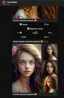 Бот поддерживает изменение соотношения сторон изображения. Для этого можно воспользоваться специальными кнопками, которые появляются вместе с сгенерированным изображением.