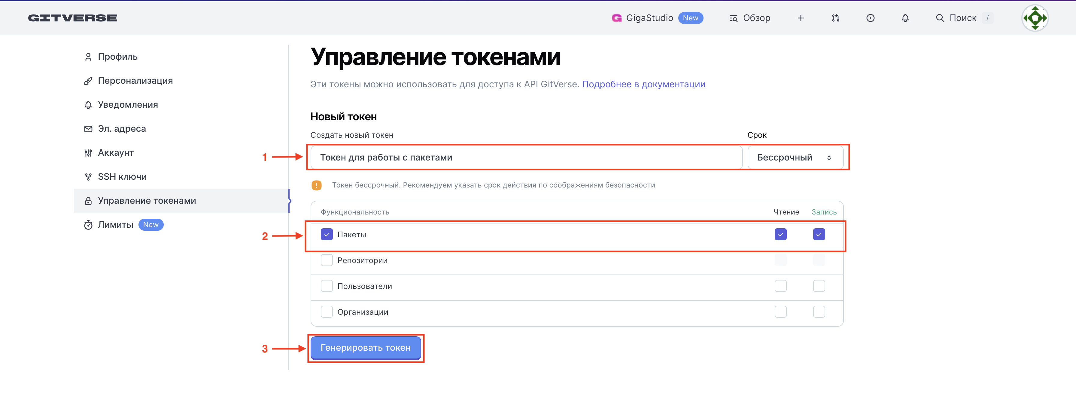 Токены позволяют работать с репозиториями и предоставляют различные уровни доступа к операциям в реестре пакетов: