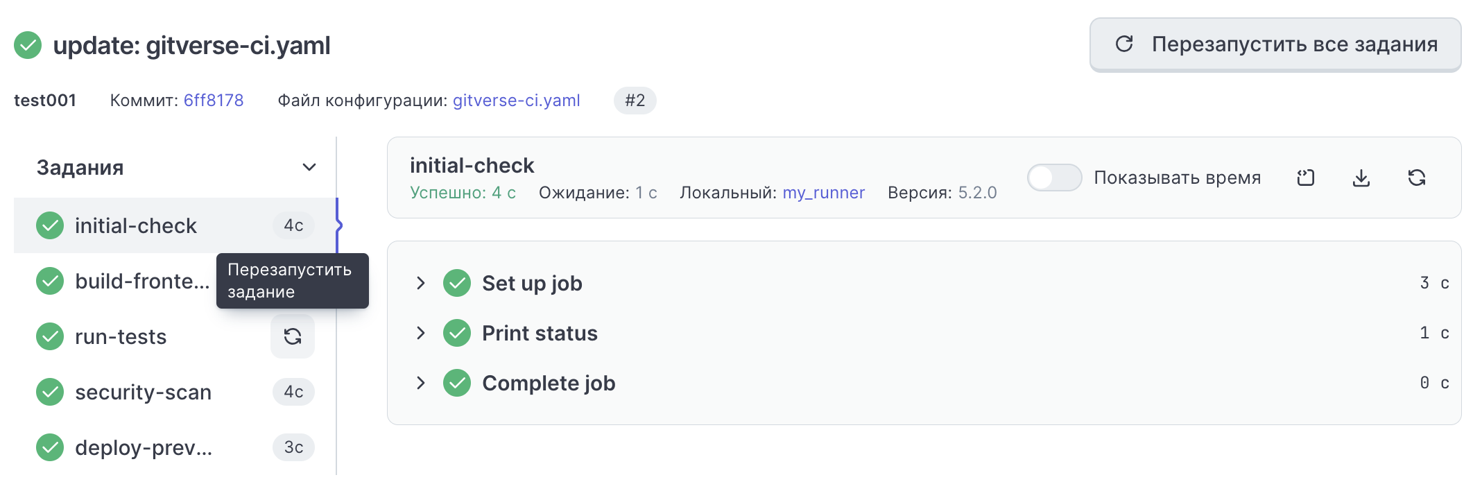 ΠΠ½ΠΎΠΏΠΊΠ° Β«ΠΡΠ΅ Π·Π°ΠΏΡΡΠΊΠΈΒ» Π΄Π°Π΅Ρ Π±ΡΡΡΡΡΠΉ ΠΈ ΡΠ΄ΠΎΠ±Π½ΡΠΉ Π΄ΠΎΡΡΡΠΏ ΠΊ ΠΈΡΡΠΎΡΠΈΠΈ Π²ΡΠΏΠΎΠ»Π½Π΅Π½ΠΈΡ ΡΠ΅ΠΊΡΡΠ΅Π³ΠΎ workflow. ΠΠ½Π° ΠΏΠ΅ΡΠ΅Π½Π°ΠΏΡΠ°Π²Π»ΡΠ΅Ρ ΠΏΠΎΠ»ΡΠ·ΠΎΠ²Π°ΡΠ΅Π»Ρ Π½Π° Π²ΠΊΠ»Π°Π΄ΠΊΡ CI/CD, Π³Π΄Π΅ Π²ΠΈΠ΄Π½Ρ Π²ΡΠ΅ Π·Π°ΠΏΡΡΠΊΠΈ, ΠΎΡΡΠΈΠ»ΡΡΡΠΎΠ²Π°Π½Π½ΡΠ΅ ΠΏΠΎ Π²ΡΠ±ΡΠ°Π½Π½ΠΎΠΌΡ workflow Π΄Π»Ρ ΠΎΡΡΠ»Π΅ΠΆΠΈΠ²Π°Π½ΠΈΡ ΠΏΡΠΎΡΠ΅ΡΡΠ° ΡΠ±ΠΎΡΠΊΠΈ ΠΈ ΡΠ°Π·Π²Π΅ΡΡΡΠ²Π°Π½ΠΈΡ.