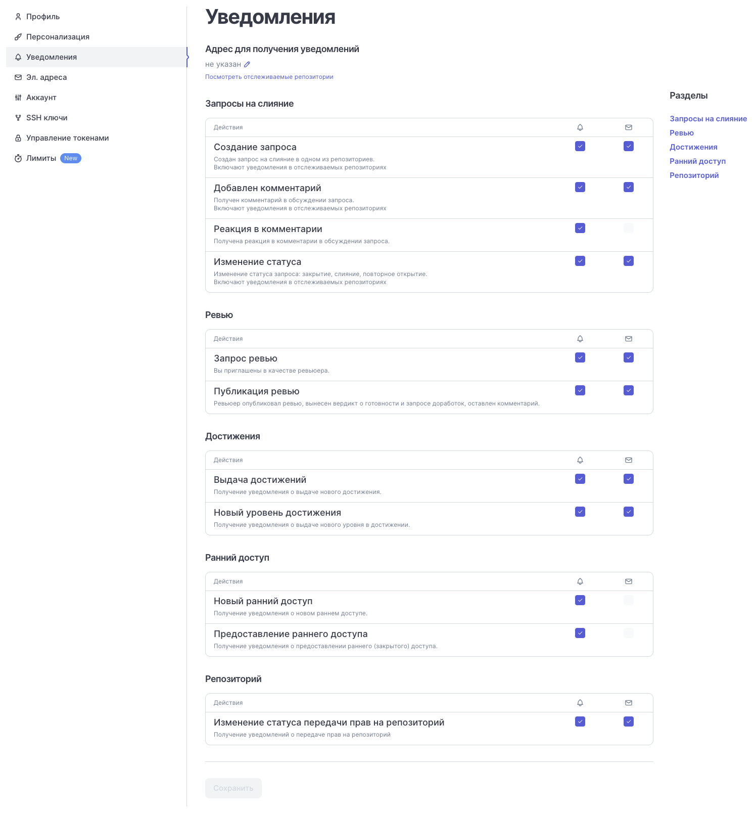 Π£Π²Π΅Π΄ΠΎΠΌΠ»Π΅Π½ΠΈΡ ΠΌΠΎΠ³ΡΡ ΠΎΡΠΏΡΠ°Π²Π»ΡΡΡΡΡ Π²Π½ΡΡΡΠΈ ΡΠ΅ΡΠ²ΠΈΡΠ° GitVerse ΠΈΠ»ΠΈ Π½Π° ΠΏΠΎΡΡΡ. Π§ΡΠΎΠ±Ρ ΠΏΠΎΡΠΌΠΎΡΡΠ΅ΡΡ ΡΠ²ΠΎΠΈ ΡΠ²Π΅Π΄ΠΎΠΌΠ»Π΅Π½ΠΈΡ Π²Π½ΡΡΡΠΈ ΡΠ΅ΡΠ²ΠΈΡΠ°, Π½Π°ΠΆΠΌΠΈΡΠ΅ Π½Π° ΠΊΠΎΠ»ΠΎΠΊΠΎΠ»ΡΡΠΈΠΊ Π² ΡΠ°ΠΏΠΊΠ΅ ΡΡΡΠ°Π½ΠΈΡΡ: