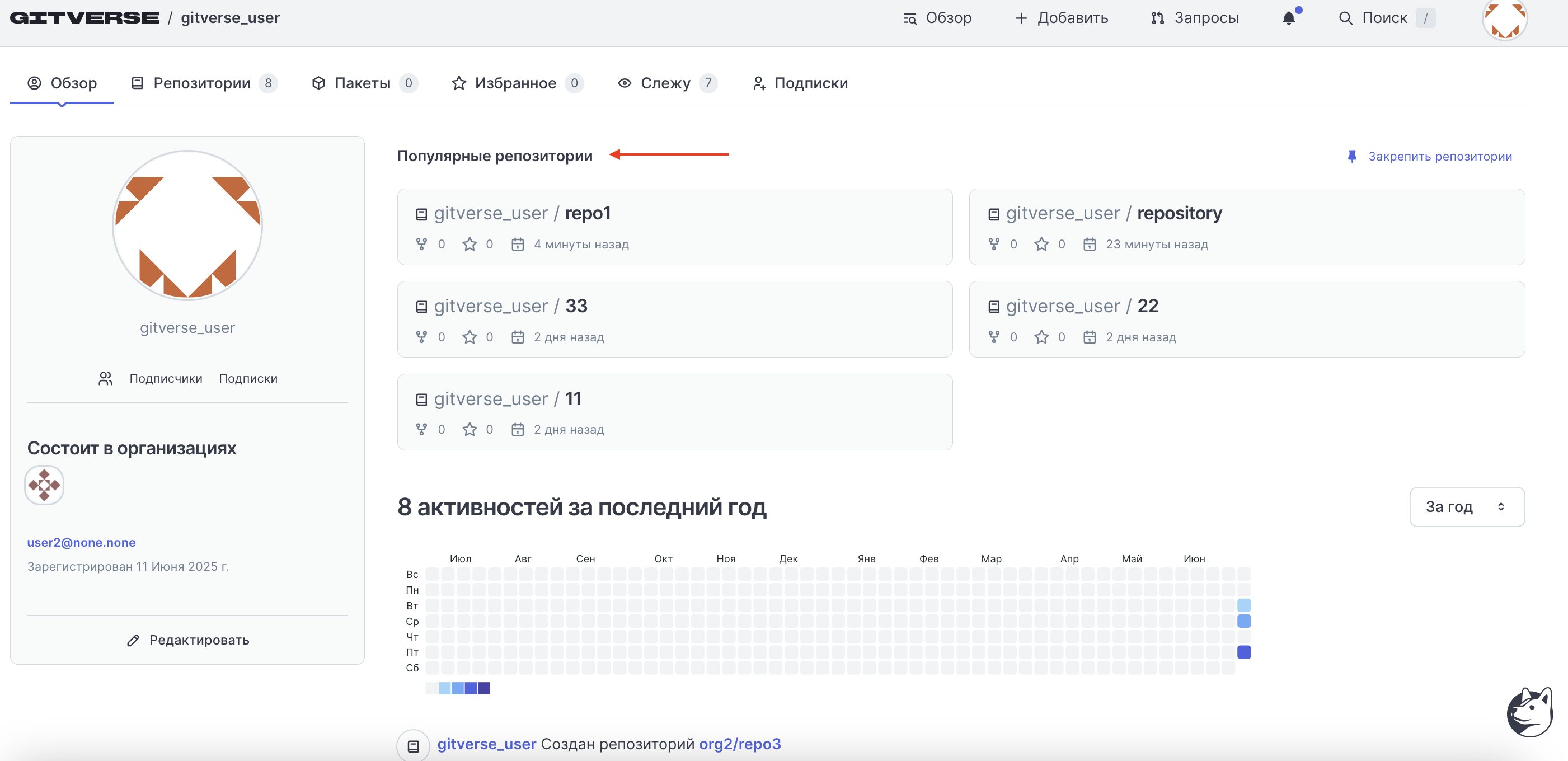 ΠΡΠΊΡΠΎΠΉΡΠ΅ Π²ΠΊΠ»Π°Π΄ΠΊΡ ΠΠ±Π·ΠΎΡ. ΠΡΠ»ΠΈ Π² ΠΏΡΠΎΡΠΈΠ»Π΅ Π½Π΅Ρ Π·Π°ΠΊΡΠ΅ΠΏΠ»Π΅Π½Π½ΡΡ ΡΠ΅ΠΏΠΎΠ·ΠΈΡΠΎΡΠΈΠ΅Π², ΠΎΡΠΎΠ±ΡΠ°ΠΆΠ°ΡΡΡΡ ΠΏΠΎΠΏΡΠ»ΡΡΠ½ΡΠ΅ ΡΠ΅ΠΏΠΎΠ·ΠΈΡΠΎΡΠΈΠΈ: