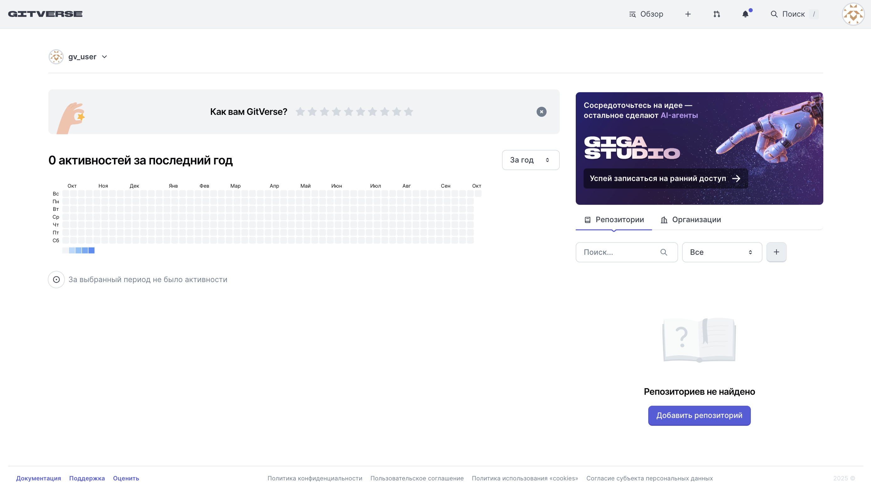 Для начала работы с GitVerse необходимо создать учетную запись.