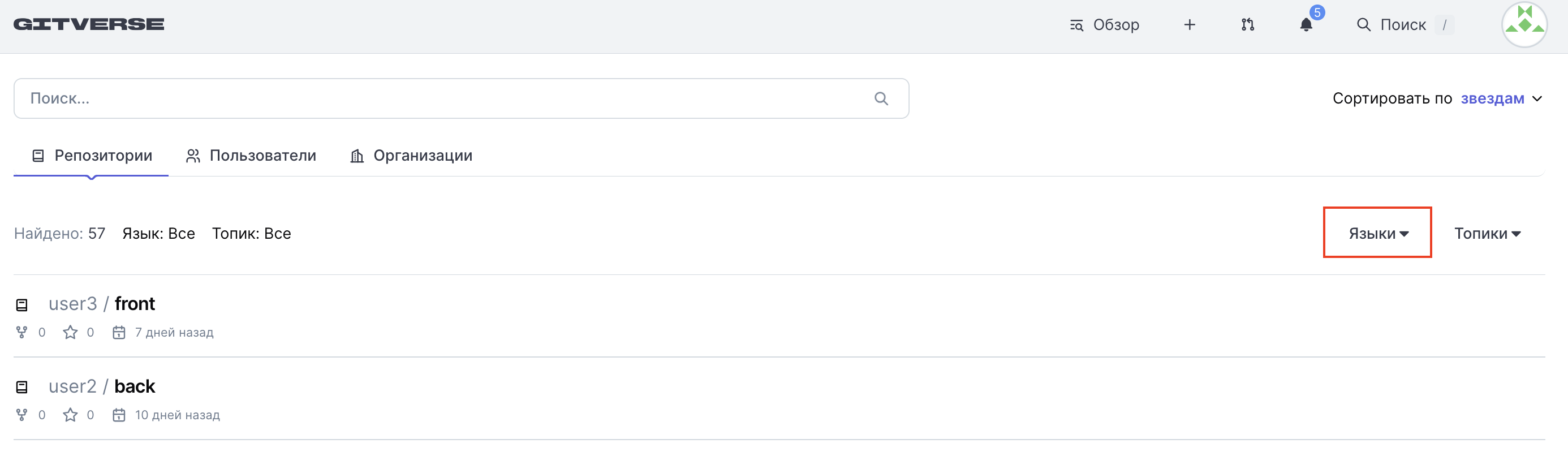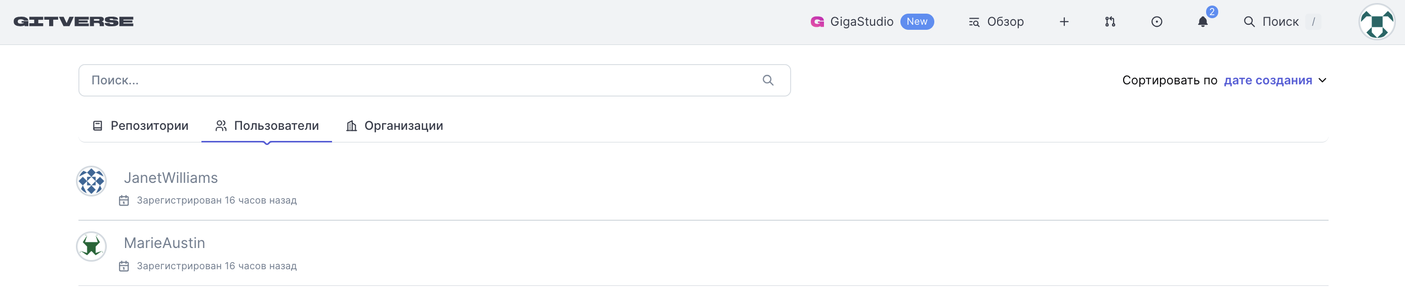 Π§ΡΠΎΠ±Ρ Π½Π°ΠΉΡΠΈ Π½ΡΠΆΠ½ΠΎΠ³ΠΎ ΠΏΠΎΠ»ΡΠ·ΠΎΠ²Π°ΡΠ΅Π»Ρ, Π½Π° Π²ΠΊΠ»Π°Π΄ΠΊΠ΅ ΠΠΎΠ»ΡΠ·ΠΎΠ²Π°ΡΠ΅Π»ΠΈ Π² ΠΏΠΎΠ»Π΅ Π΄Π»Ρ ΠΏΠΎΠΈΡΠΊΠ° Π²Π²Π΅Π΄ΠΈΡΠ΅ Π΅Π³ΠΎ ΠΈΠΌΡ Π½Π° GitVerse. ΠΡΠΈ Π½Π΅ΠΎΠ±Ρ ΠΎΠ΄ΠΈΠΌΠΎΡΡΠΈ ΡΠΊΠ°ΠΆΠΈΡΠ΅ ΡΠΈΠΏ ΡΠΎΡΡΠΈΡΠΎΠ²ΠΊΠΈ Π² ΠΏΡΠ°Π²ΠΎΠΌ Π²Π΅ΡΡ Π½Π΅ΠΌ ΡΠ³Π»Ρ: