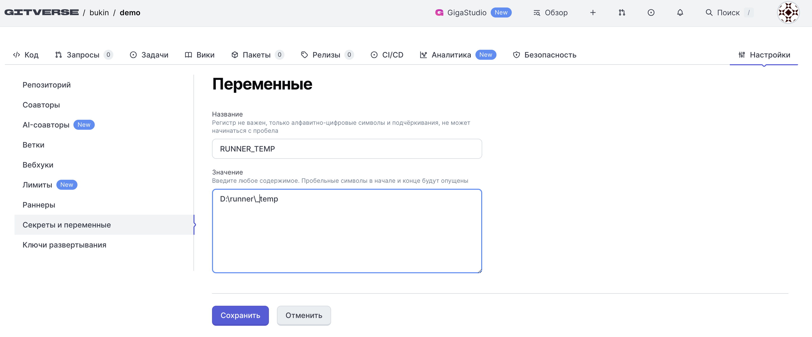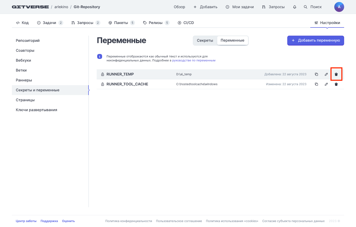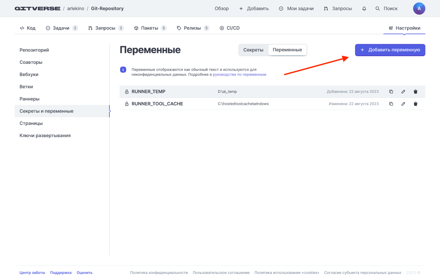 Переменные репозитория
