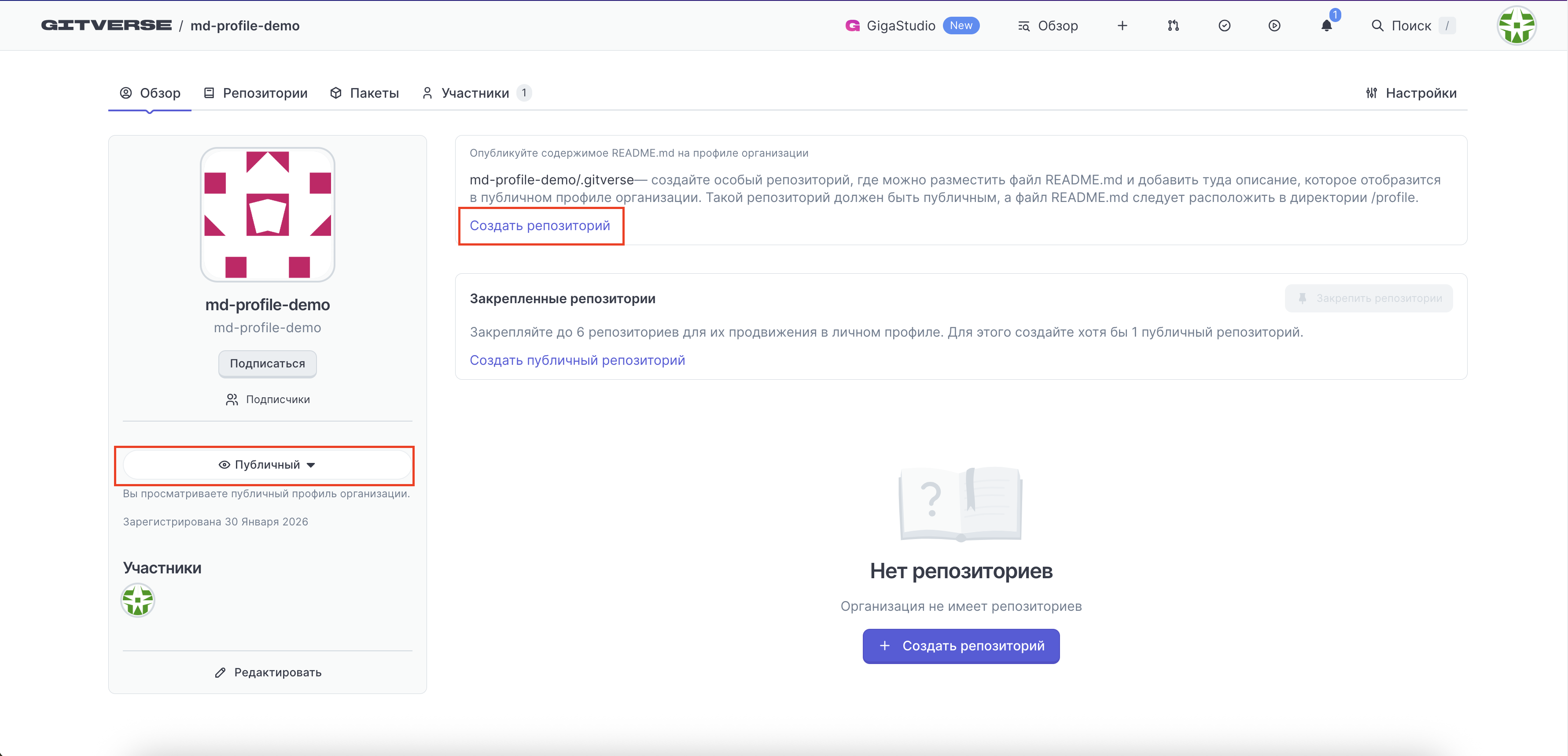 ΠΠ°ΠΆΠΌΠΈΡΠ΅ Π½Π° ΡΡΡΠ»ΠΊΡ Β«Π‘ΠΎΠ·Π΄Π°ΡΡ ΡΠ΅ΠΏΠΎΠ·ΠΈΡΠΎΡΠΈΠΉΒ», ΡΡΠΎΠ±Ρ ΡΠΎΠ·Π΄Π°ΡΡ ΡΠ΅ΠΏΠΎΠ·ΠΈΡΠΎΡΠΈΠΉ Π΄Π»Ρ ΠΏΡΠ±Π»ΠΈΡΠ½ΠΎΠ³ΠΎ ΠΏΡΠΎΡΠΈΠ»Ρ ΠΎΡΠ³Π°Π½ΠΈΠ·Π°ΡΠΈΠΈ ΠΈ ΠΎΡΡΠ΅Π΄Π°ΠΊΡΠΈΡΠΎΠ²Π°ΡΡ ΡΠ΅ΠΊΡΡ. ΠΡΠΎΡ ΡΠ΅ΠΊΡΡ ΠΎΡΠΎΠ±ΡΠ°ΠΆΠ°Π΅ΡΡΡ Π² ΠΏΡΠ±Π»ΠΈΡΠ½ΠΎΠΌ ΠΏΡΠΎΡΠΈΠ»Π΅ ΠΎΡΠ³Π°Π½ΠΈΠ·Π°ΡΠΈΠΈ ΠΈ Π²ΠΈΠ΄Π΅Π½ Π²ΡΠ΅ΠΌ ΠΏΠΎΠ»ΡΠ·ΠΎΠ²Π°ΡΠ΅Π»ΡΠΌ, Π½Π΅ ΡΠΎΡΡΠΎΡΡΠΈΠΌ Π² ΠΎΡΠ³Π°Π½ΠΈΠ·Π°ΡΠΈΠΈ.