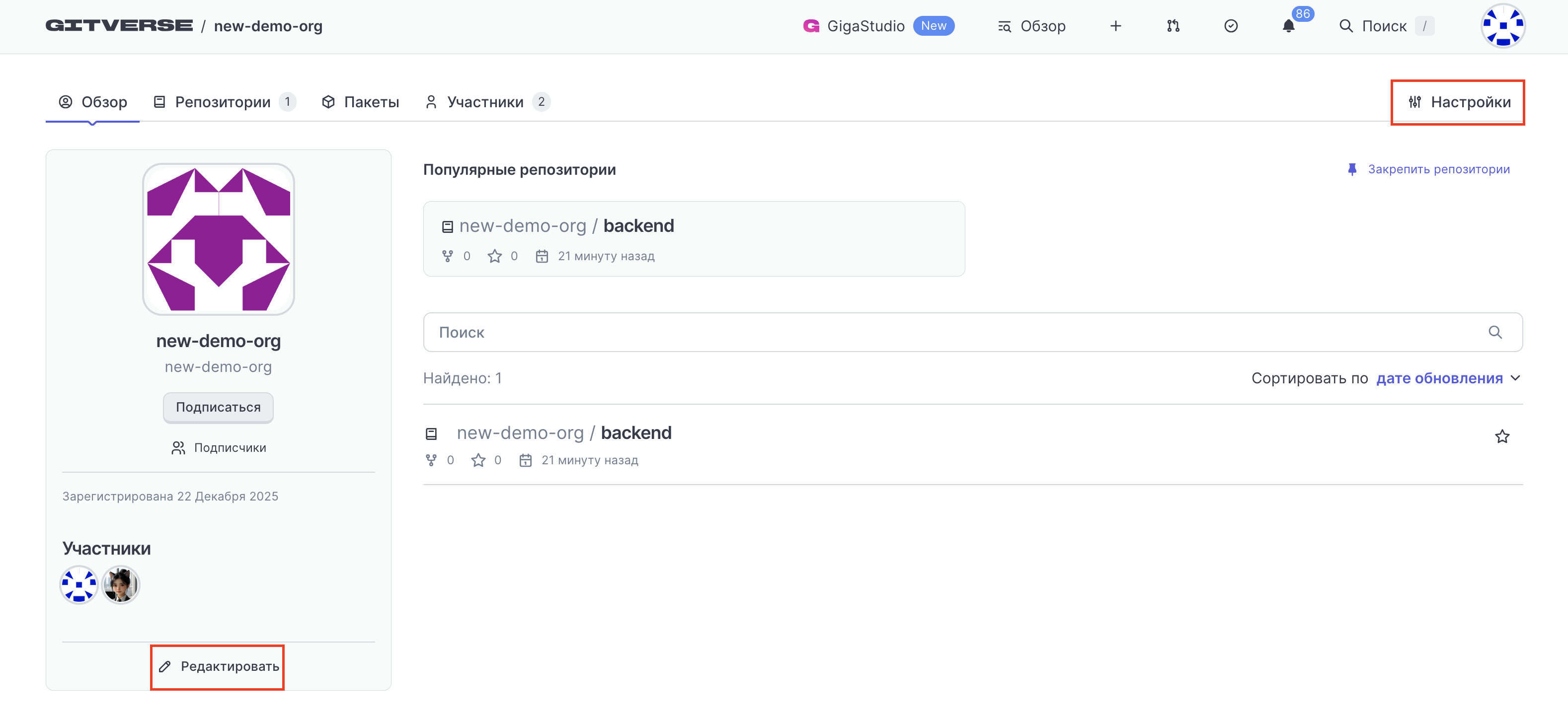 ΠΡ ΠΌΠΎΠΆΠ΅ΡΠ΅ ΠΏΠΎΠ΄Π΅Π»ΠΈΡΡΡΡ Π΄ΠΎΠΏΠΎΠ»Π½ΠΈΡΠ΅Π»ΡΠ½ΠΎΠΉ ΠΈΠ½ΡΠΎΡΠΌΠ°ΡΠΈΠ΅ΠΉ ΠΎΠ± ΠΎΡΠ³Π°Π½ΠΈΠ·Π°ΡΠΈΠΈ Ρ ΡΠΎΠΎΠ±ΡΠ΅ΡΡΠ²ΠΎΠΌ GitVerse. ΠΠ»Ρ ΡΡΠΎΠ³ΠΎ ΠΏΠ΅ΡΠ΅ΠΉΠ΄ΠΈΡΠ΅ Π½Π° Π²ΠΊΠ»Π°Π΄ΠΊΡ ΠΡΠ³Π°Π½ΠΈΠ·Π°ΡΠΈΡ Π½Π°ΡΡΡΠΎΠ΅ΠΊ: