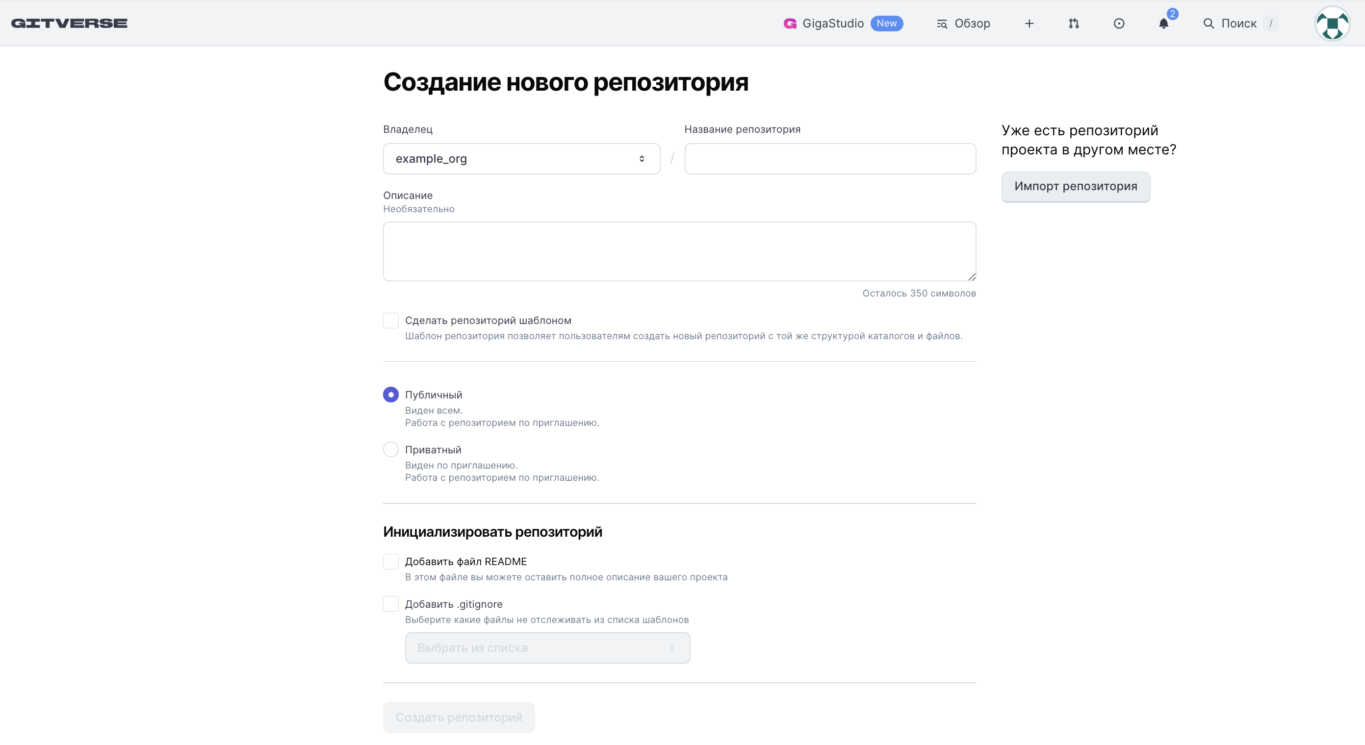 ΠΡΠΎΠ±ΡΠ°Π·ΠΈΡΡΡ ΡΡΡΠ°Π½ΠΈΡΠ° ΡΠΎΠ·Π΄Π°Π½ΠΈΡ ΡΠ΅ΠΏΠΎΠ·ΠΈΡΠΎΡΠΈΡ, Π³Π΄Π΅ Π²Π»Π°Π΄Π΅Π»ΡΡΠ΅ΠΌ ΠΏΠΎ ΡΠΌΠΎΠ»ΡΠ°Π½ΠΈΡ Π²ΡΠ±ΡΠ°Π½Π° ΠΎΡΠ³Π°Π½ΠΈΠ·Π°ΡΠΈΡ: